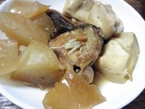 鰤アラ大根豆腐 春菊のおひたし ご飯 味噌汁