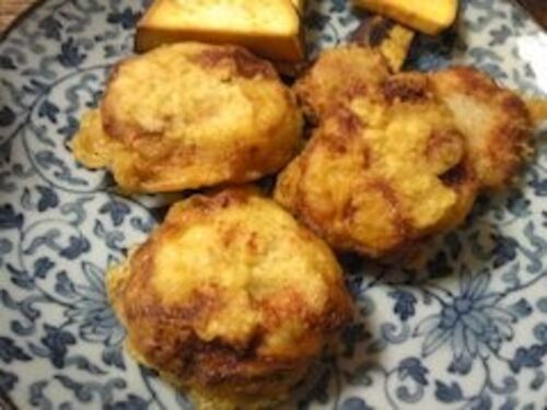 蓮根の肉詰め揚げ ご飯 味噌汁
