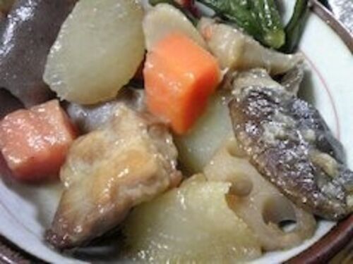 煮〆 蓮根の肉詰め焼き ご飯 味噌汁